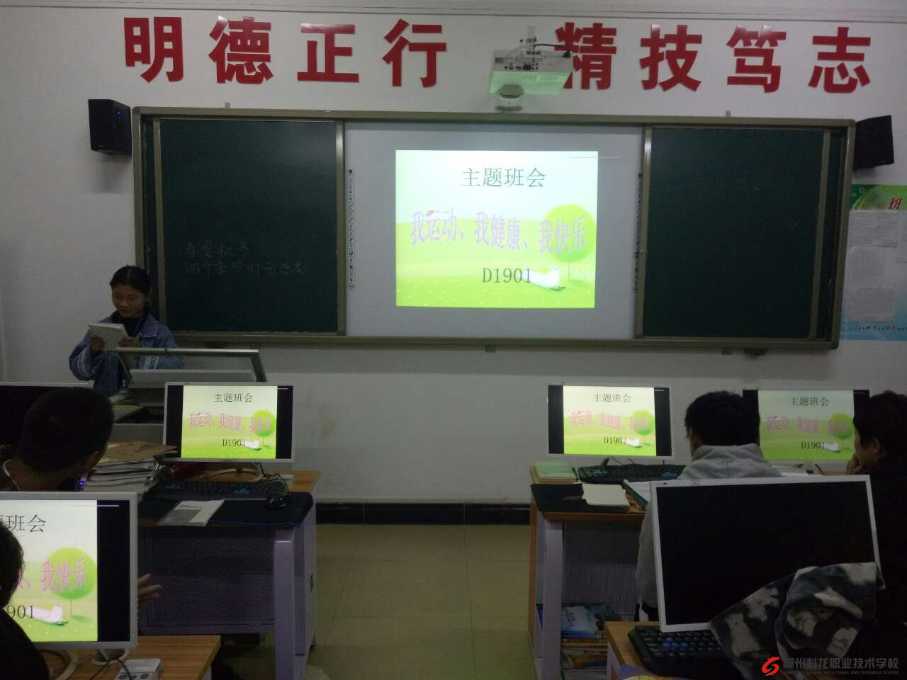 2019年10月28日D1901班为了配合学校运动会的举行,开展《我运动、我健康、我快乐》的主题班会,每位同学轮流发言,旨在发动同学们积极参与体育锻炼,全面提高个人自身素质。