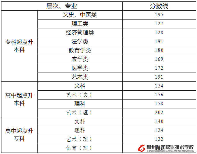 湖南省2020年成人高校招生录取控制分数线